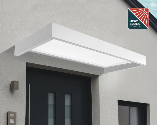 Sophia™ 1600 Door Awning 37" x 63" White Frame & Panels | Palram-Canopia